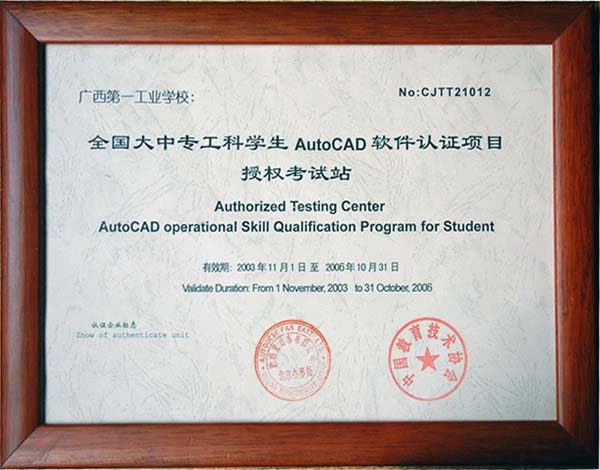 全国大中专工科学生学生AutoCAD软件认证项目授权考试站