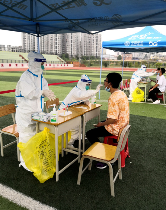 为保障检测安全有序进行,学校进行周密部署和安排,合理设置检测场地,分工明确、责任到人。采样现场,待检师生排着整齐的队伍,保持一米间距,出示电子健康卡二维码等待核酸检测,医务人员穿戴防护服按流程规范采样。本次核酸采样2000余人次,做到应检尽检,不落一人。